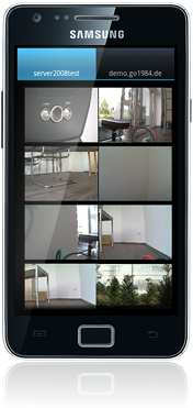 Nutzen Sie die im Google Play Store verfügbare Android Applikation "go1984 HD", um auf den go1984 Webserver zuzugreifen und Live-Bilder sowie Aufnahmen zu betrachten und PTZ-Kameras zu steuern.