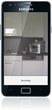 Betätigen Sie die Hardwaretaste "Zurück", um zur Kameraübersicht zurückzukehren. Betätigen Sie die Hardwaretaste "Menü" und wählen Sie anschließend "Recordings", um die Aufnahmenübersicht für die gerade gewählten Kamera zu öffnen.