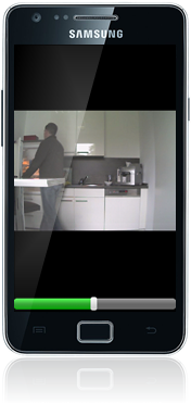 Wiederum können Sie über den Bildschirm "wischen", um in den Aufnahmen zu blättern und auf ein Bild tippen, um die gewünschte Aufnahme wiederzugeben. Während der Wiedergabe steht ebenso die oben beschriebene digitale PTZ-Funktion zur Verfügung. Tippen und schieben Sie die unterhalb der Szene zu sehende Ablaufkontrolle, um schnell an die gewünschte Stelle innerhalb der Aufnahme zu gelangen: