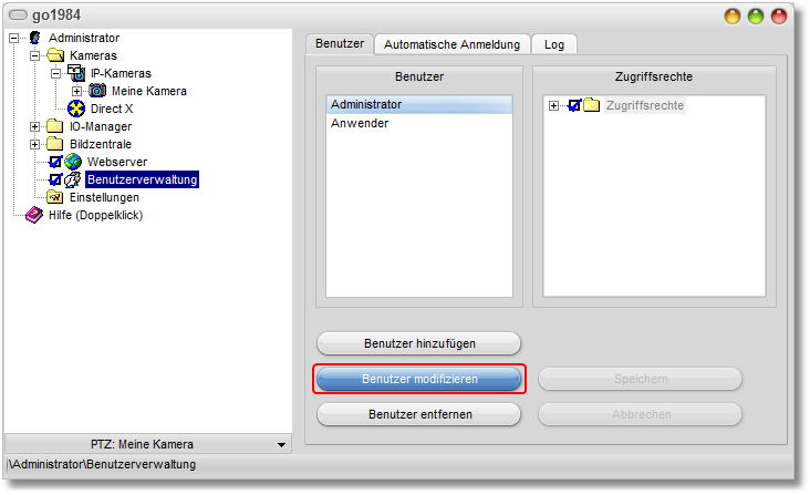 Die Benutzerverwaltung gibt Ihnen die Möglichkeit, individuelle Berechtigungen für den Zugriff auf die Programmoberfläche, das Webinterface, die Aufzeichnungen und die Steuerung von PTZ-Kameras zu vergeben.