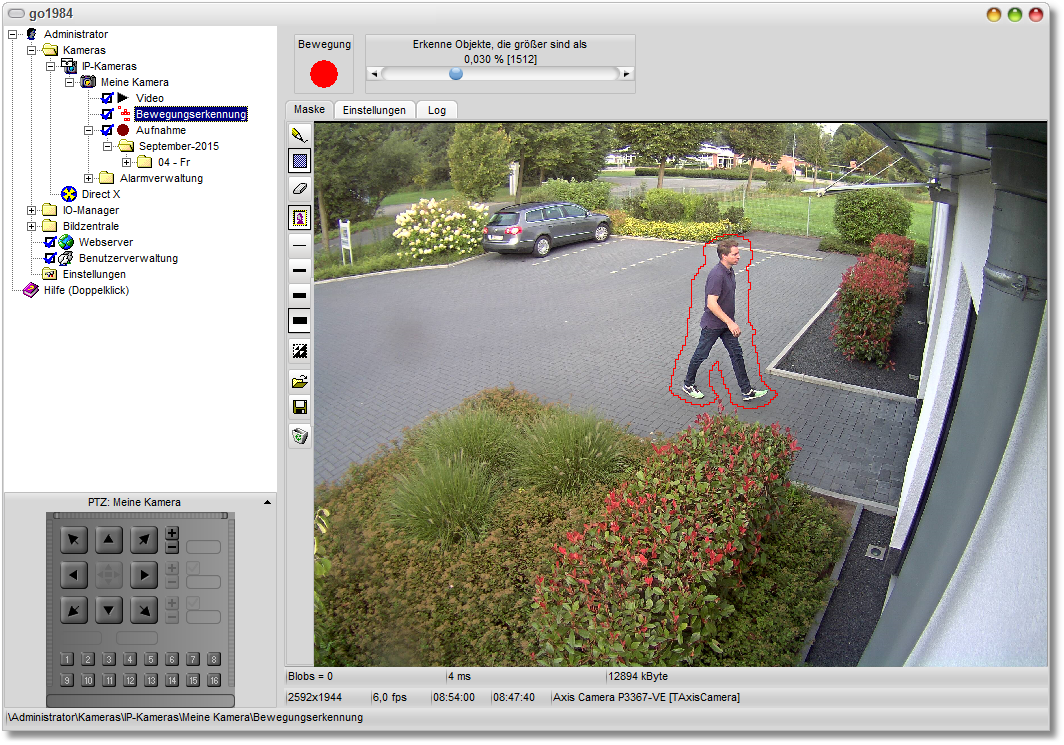 go1984 ist mit einer leistungsstarken, integrierten Bewegungserkennung ausgestattet, die zuverlässig mit allen kompatiblen Kameras funktioniert. Die Bewegungserkennung bietet optimierte Voreinstellungen für die Analyse in Außenbereichen sowie Innenbereichen, um Fehlalarme weitestgehend zu vermeiden. Die Bewegungserkennung passt sich automatisch den Gegebenheiten an und entfernt bspw. dauerhafte Störungen durch Bäume, Büsche etc..