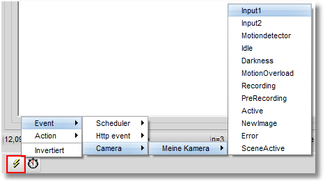 So wäre es im obigen Beispiel auch möglich, zusätzlich zur Aufnahme noch eine E-Mail Alarmierung mit dem gleichen Signal auszulösen. Außerdem sind die Signale einer Kamera auch für alle anderen Kameras verfügbar. So könnte im Beispiel auch die Aufnahme aller Kameras über das Eingangssignal einer Kamera gesteuert werden.