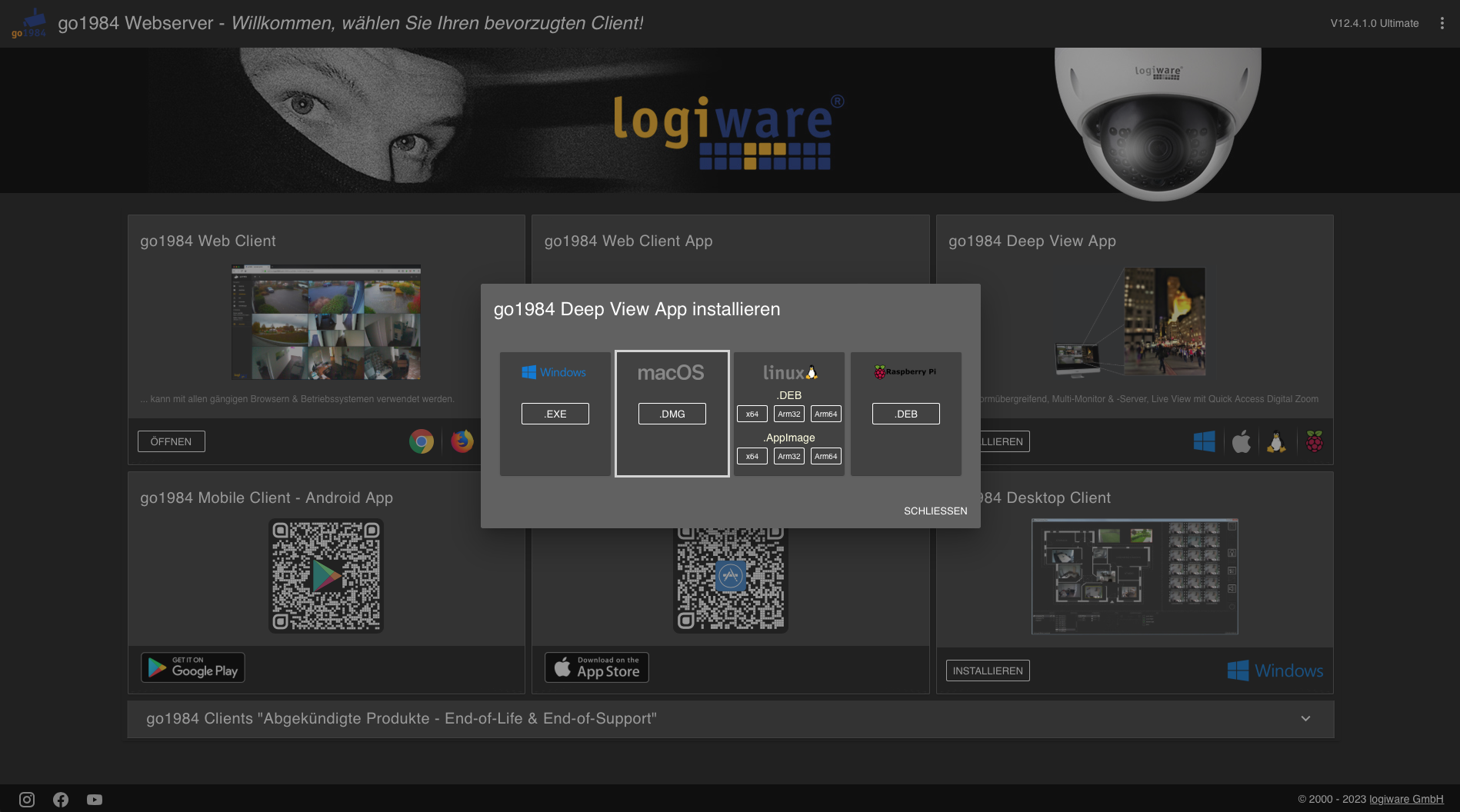 Ab der go1984 Version 12.8.3.0 können Sie die go1984 Deep View App für den Zugriff auf Ihre go1984 Server nutzen.
