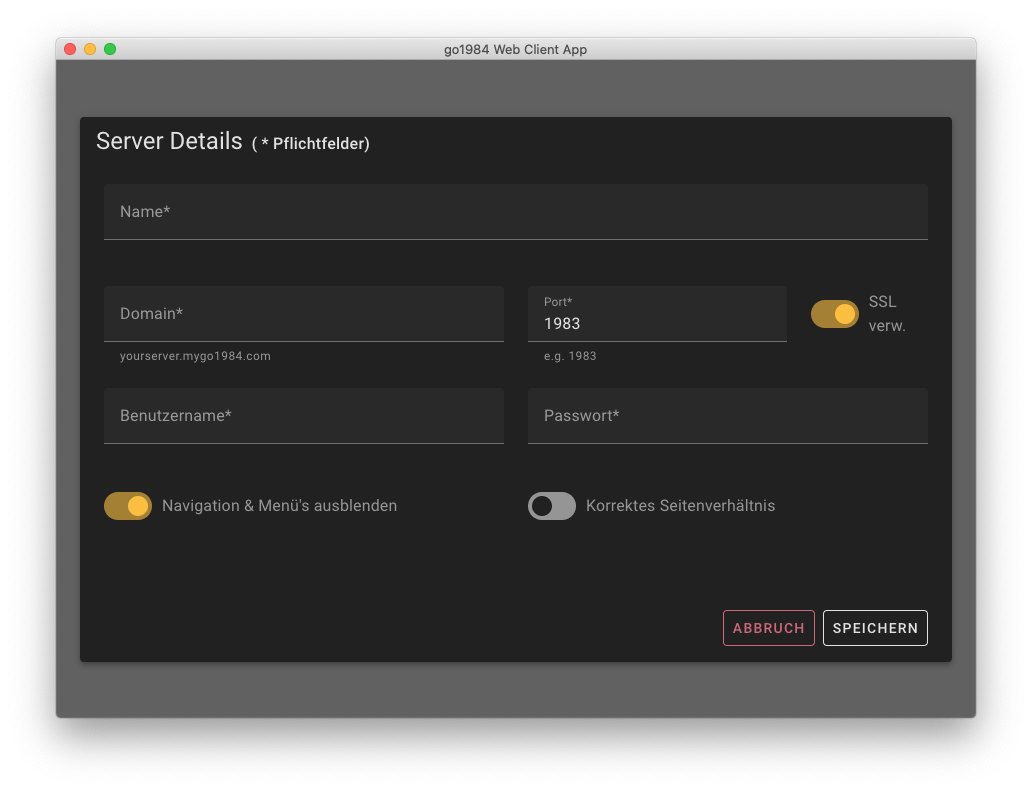 Nach der Installation können Sie Ihren go1984 Server hinzufügen. Drücken Sie hierzu den Button "Server hinzufügen".