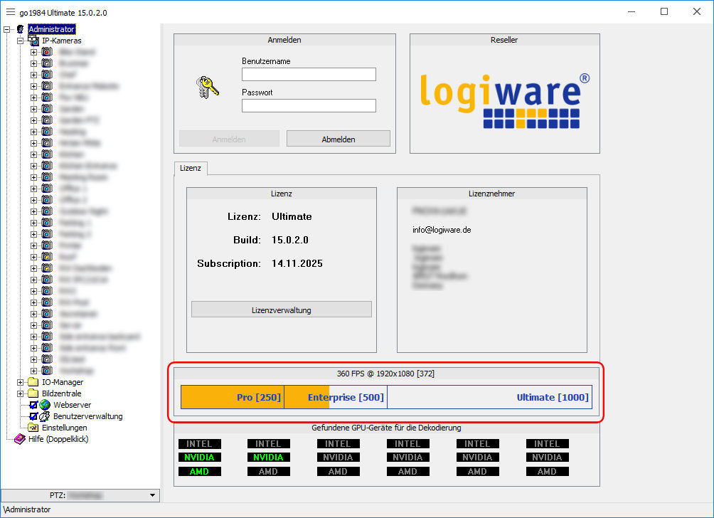 •[372]: Die gesamt konfigurierte FPS-Rate über alle Kameras im System.
