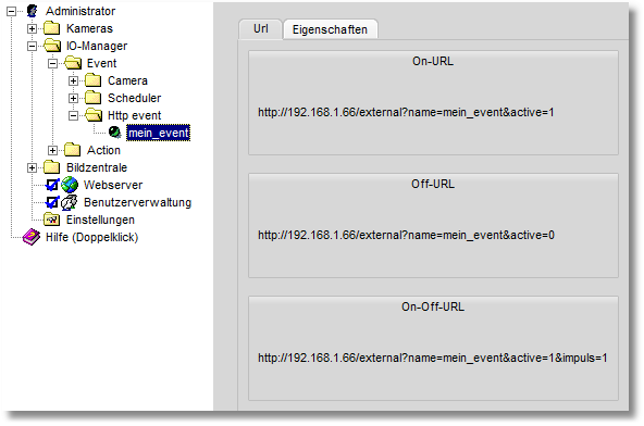 Ebenso könnte der Schaltausgang einer IP-Kamera, des logiware Net-IOs oder des logiware IO-Sticks nach entsprechender Verknüpfung über das Http event kontrolliert werden: