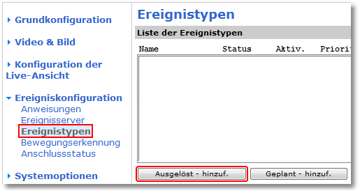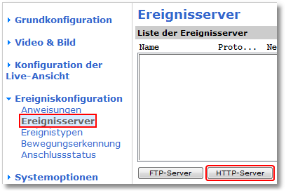Soll ein externes Gerät das Http event kontrollieren, so werden die weiteren Einstellungen direkt über das Webinterface der Kamera bzw. des Bewegungssensors vorgenommen. Exemplarisch finden Sie nachfolgend die Einstellungen einer Axis Kamera.