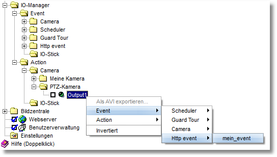 Sie finden diese Funktion unterhalb des IO-Managers. Fügen Sie über den entsprechenden Button ein neues Ereignis hinzu.