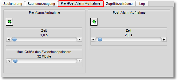 Unter Umständen müssen die Werte für den Vor- bzw. Nachalarm noch angepasst werden, damit die aufgezeichneten Szenen jeweils den gesamten gewünschten Zeitraum abdecken.