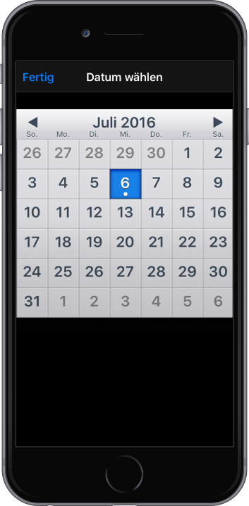 Über den Punkt "Date" können Sie den gewünschten Tag auswählen. Tage mit vorhandenen Aufzeichnungen werden mit einem Punkt dargestellt.