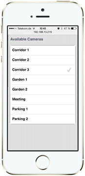 Der Kamerawechsel erfolgt über Auswahl aus der Kameraliste.