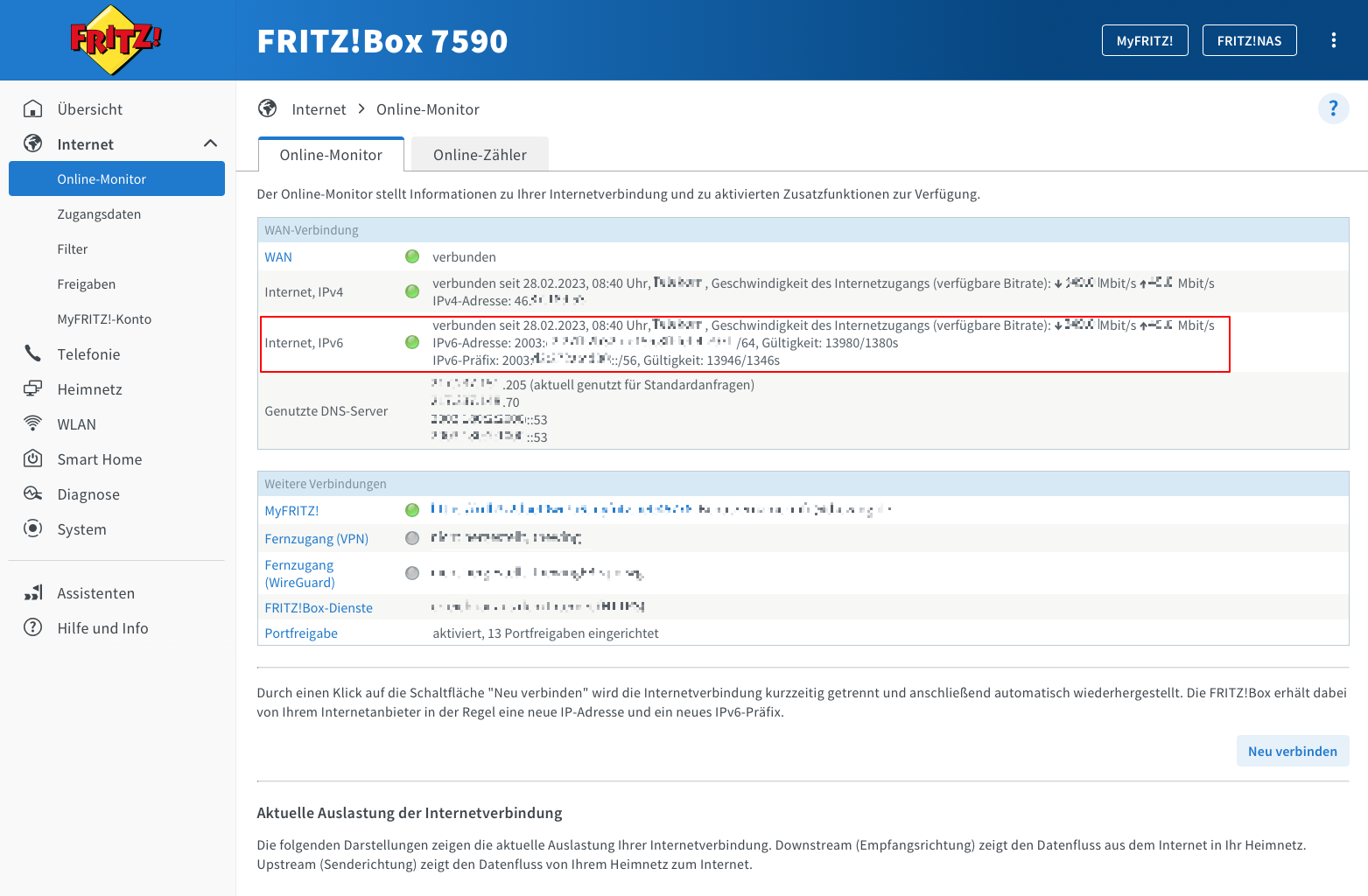 Ob die Fritz!Box schon IPv6 nutzt, können Sie im am Besten im Online-Monitor einsehen.