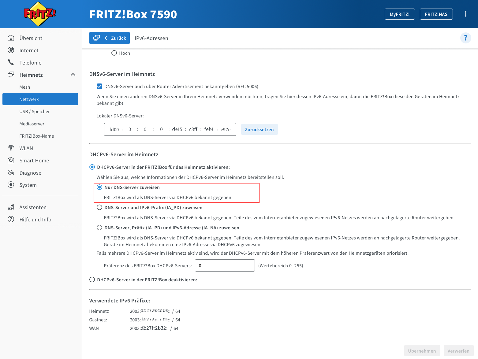 Prüfen Sie, dass hier "Nur DNS-Server zuweisen" ausgewählt wurde.