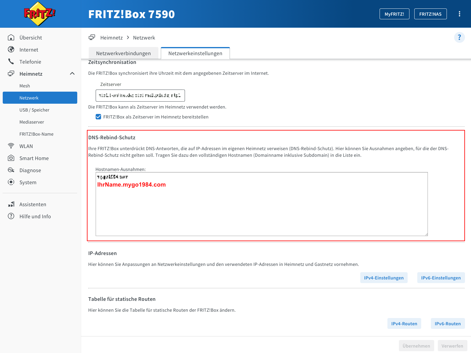 Um die go1984 Clients via *.mygo1984.com DDNS auch aus dem Heimnetz nutzen zu könnten, tragen Sie hier bitte "IhrName.mygo1984.com" ein.