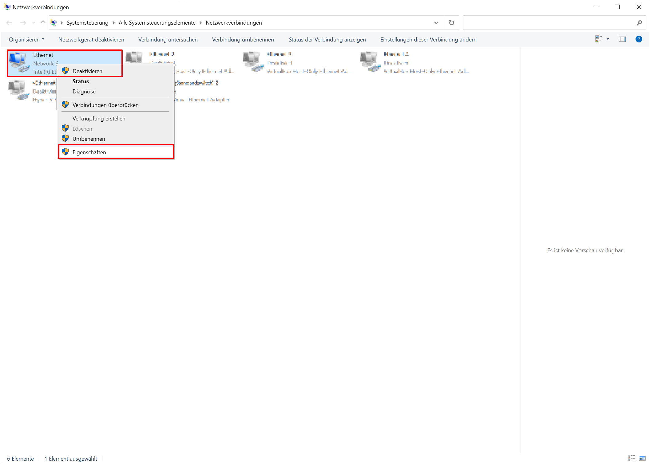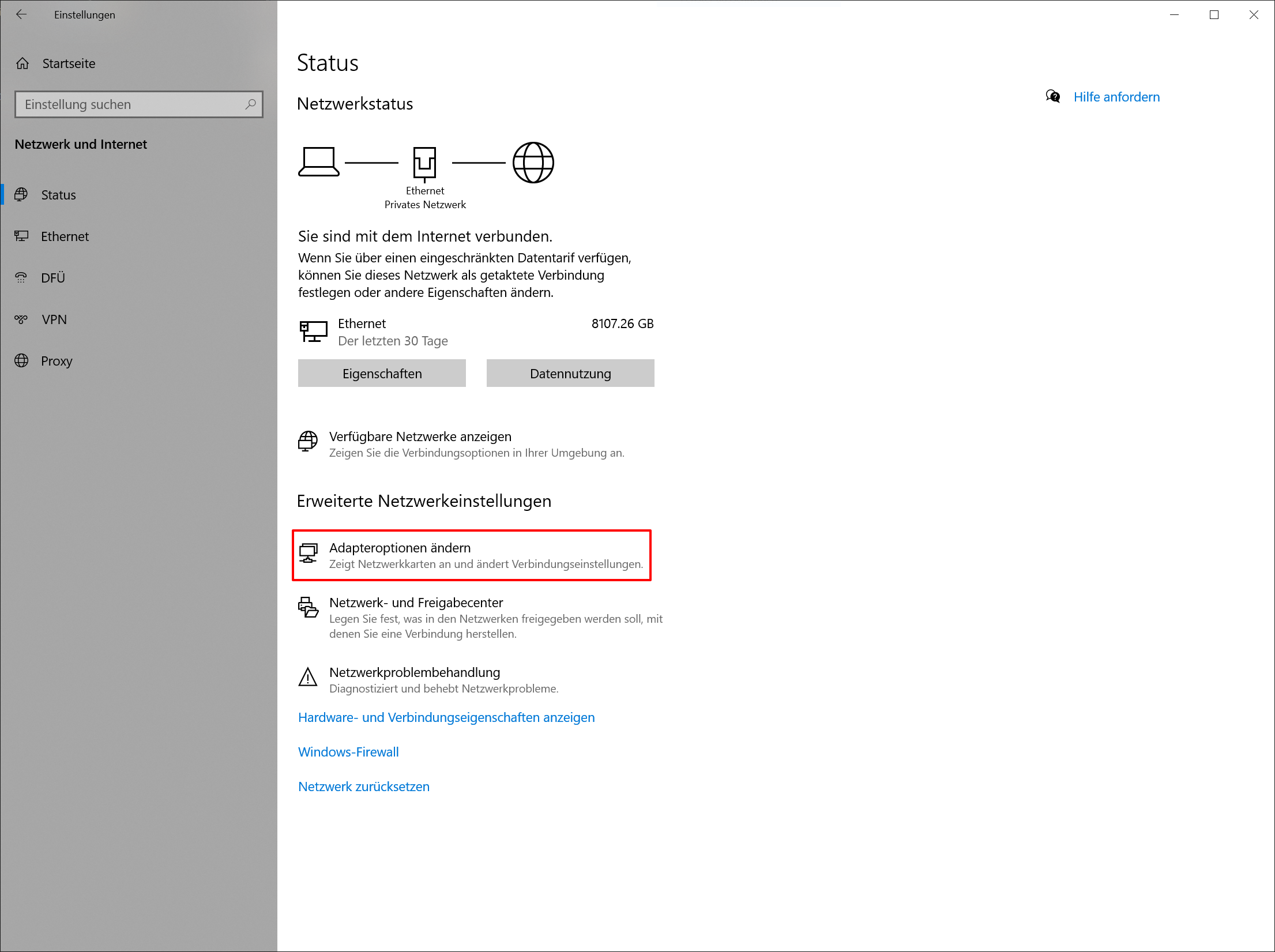 Windows Netzwerk Adapteroptionen Eigenschaften