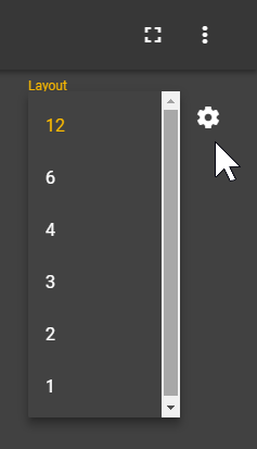 Die Kameraübersicht zeigt alle verfügbaren Kameras. Sie haben die Möglichkeit, die Anzeige komfortabel auf Ihre Bedürfnisse anzupassen, indem Sie die Spaltenanzahl festlegen. Klicken Sie dazu oben rechts auf das Zahnradsymbol und wählen Sie anschließend die gewünschte Spaltenzahl: