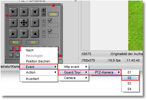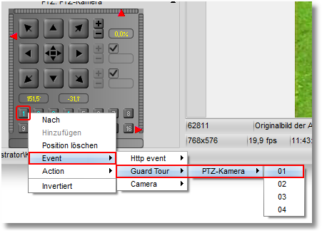 Verknüpfen Sie nun jeweils die zuvor erstellten Preset-Positionen mit den korrespondierenden Guard-Tour Positionen: