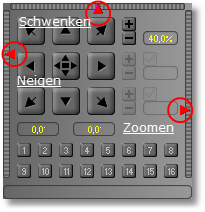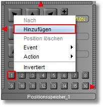 Pro Kamera können je nach Modell bis zu 16 Kamerapositionen gespeichert werden. Klicken Sie dazu einfach mit der Maus auf die gewünschte Position.