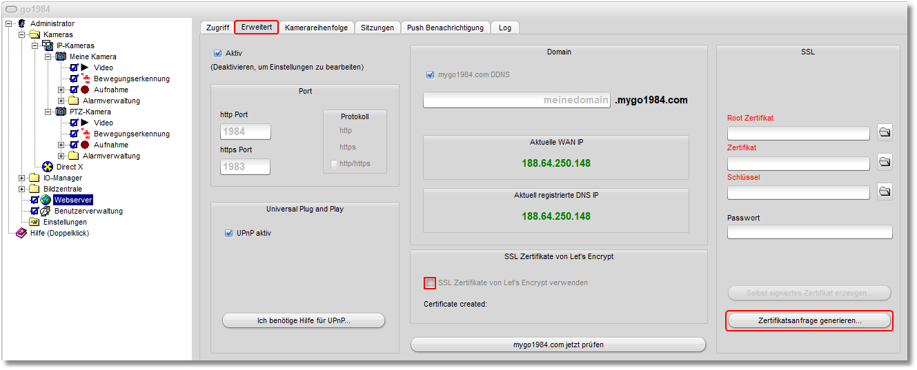 go1984 nutzt standardmäßig Zertifikate von "Let's Encrypt" für die gesicherte https Verbindung. Wenn Sie sich entscheiden, einen anderen Anbieter wie bspw. VeriSign zu verwenden, so muss zunächst die "Let's Encrypt" Unterstützung deaktiviert werden. Die Zertifikate anderer Anbieter können ausschließlich in der go1984 Ultimate Edition genutzt werden.