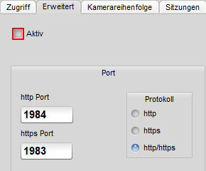 Wählen Sie nun noch, ob die Verbindung ausschließlich über HTTPS oder unter HTTP und HTTPS möglich sein soll. Zudem können Sie für die HTTPS Verbindung einen vom Standard 1983 abweichenden Port angeben. Aktivieren Sie den Webserver anschließend wieder: