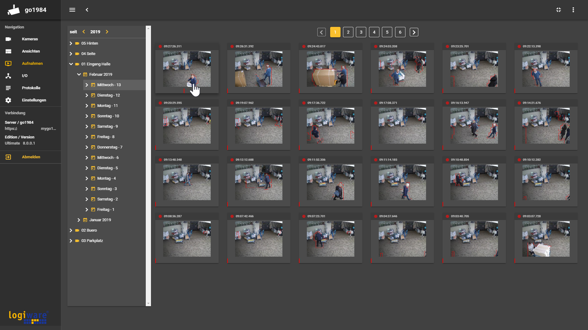 In der Tagesübersicht wird jede Szenendatei durch ein aussagekräftiges Bild aus der Szenenmitte repräsentiert. Auch hier ist durch die Mausbewegung eine Schnellvorschau verfügbar. Oberhalb der Vorschaubilder können Sie die Szenen des gewählten Tages ggf. seitenweise durchsuchen.