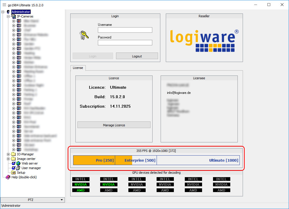 The system graphic displays the maximum achievable FPS (Frames per Second) for the different editions as well as the currently achieved or configured total FPS of the system.